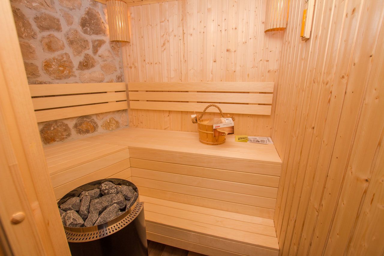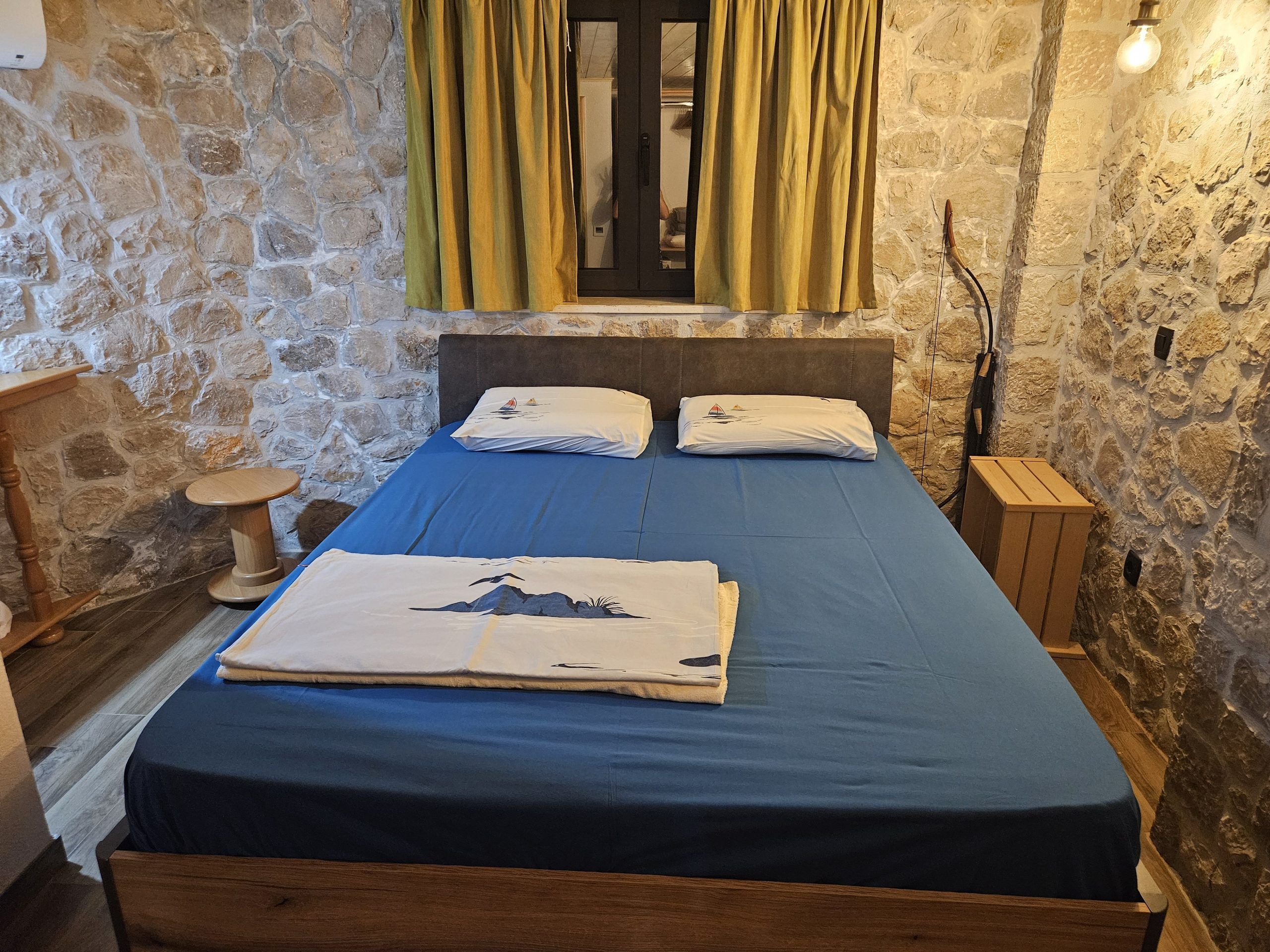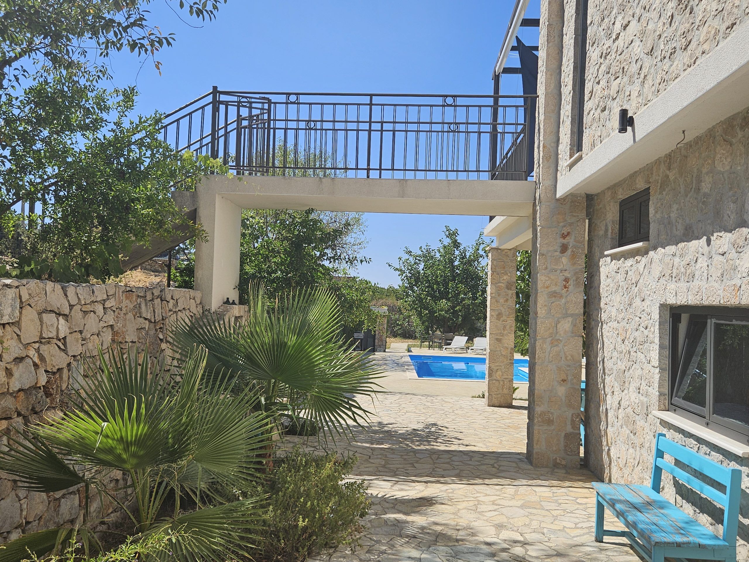 Stone Villa Umorni Kosac is luxury villa in Bar, Montenegro. It is combination of old Mediterranean stone house style with modern interior and exterior elements. Upper floor has 80m2 with living room, two bedrooms ( one on the gallery ), bathroom and sauna. On down floor there is rustic dining room with full kitchen. There are two terraces, one 40m2 on the down floor, and another one 25m2 on the upper floor, providing excellent view on the town of Bar, and sea view.