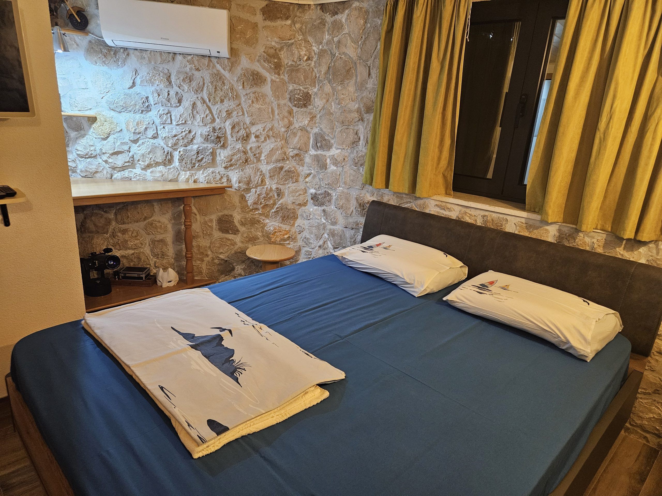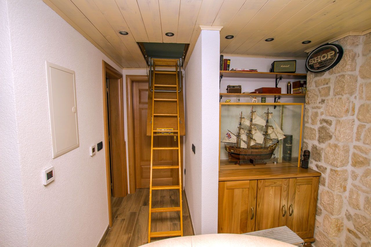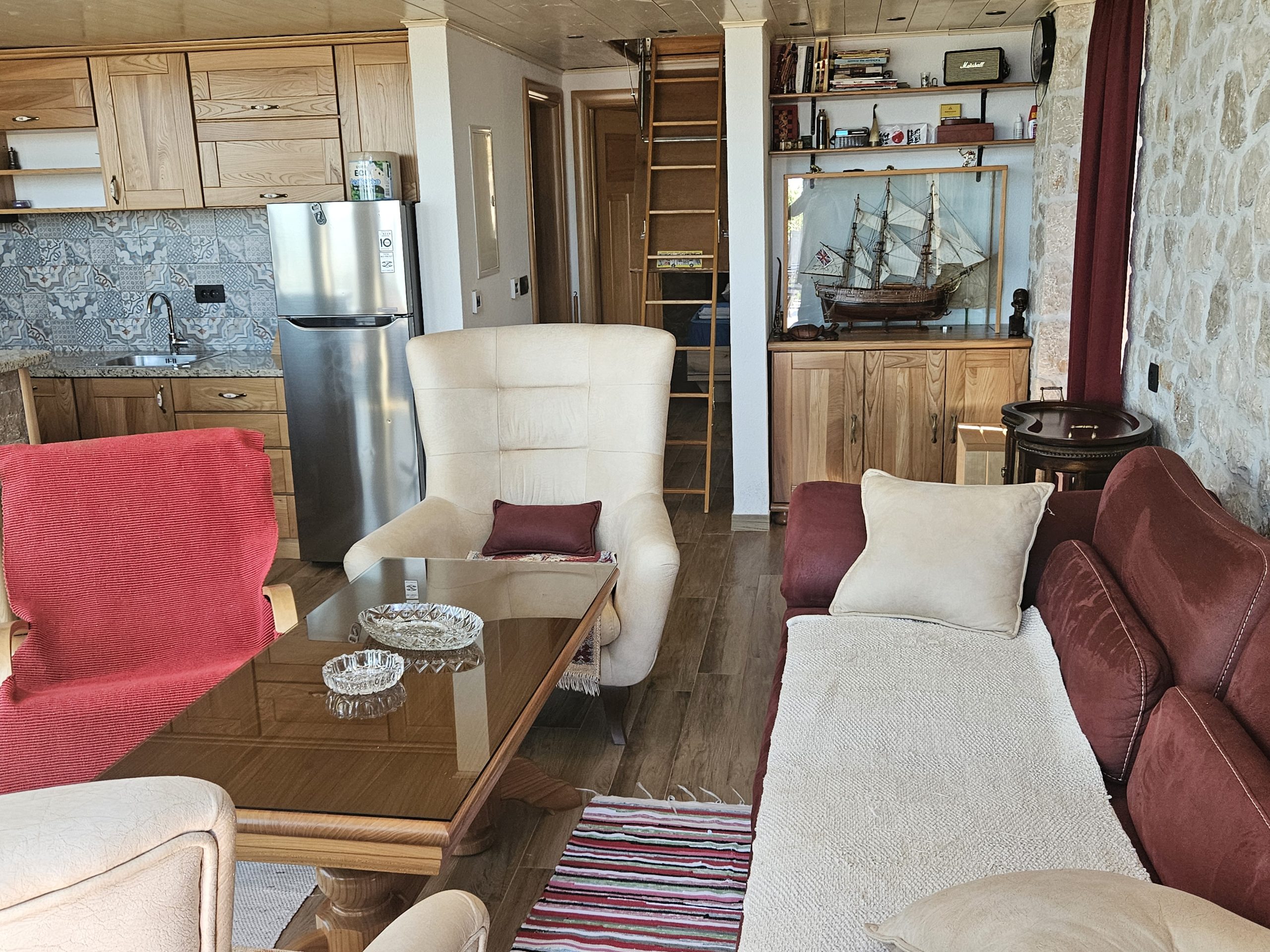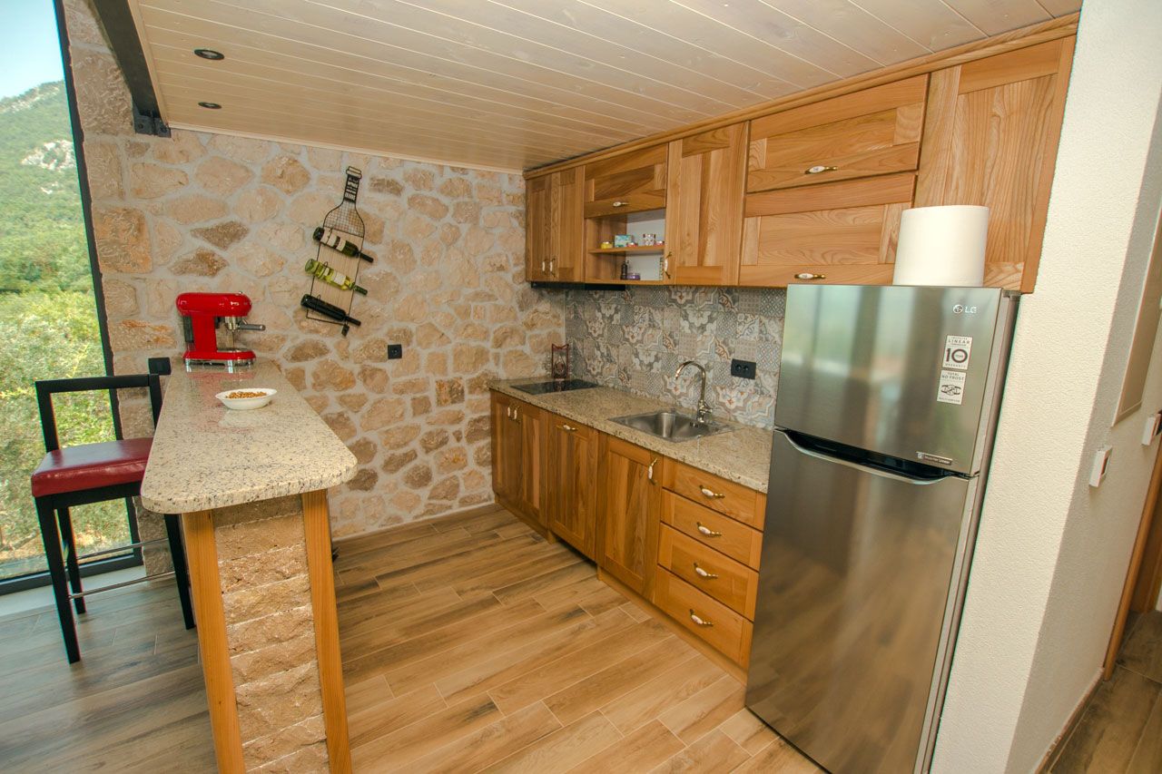 Stone Villa Umorni Kosac is luxury villa in Bar, Montenegro. It is combination of old Mediterranean stone house style with modern interior and exterior elements. Upper floor has 80m2 with living room, two bedrooms ( one on the gallery ), bathroom and sauna. On down floor there is rustic dining room with full kitchen. There are two terraces, one 40m2 on the down floor, and another one 25m2 on the upper floor, providing excellent view on the town of Bar, and sea view.